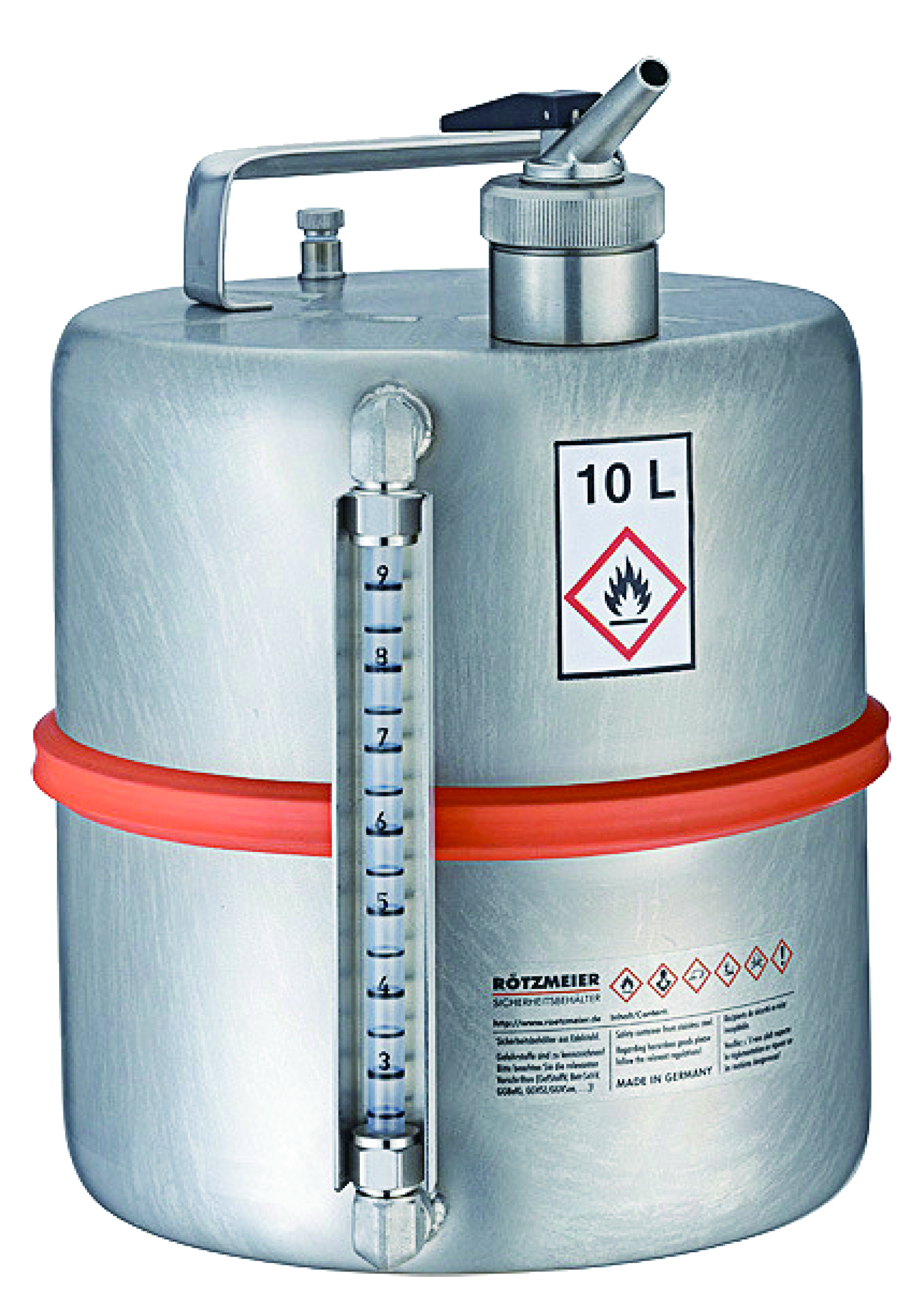 德国原装进口路斯米雅ROTZMEIER 10ZI 10公升不锈钢安全桶材质为0.8mm厚316不锈钢,用于安全储存大量易燃液体。