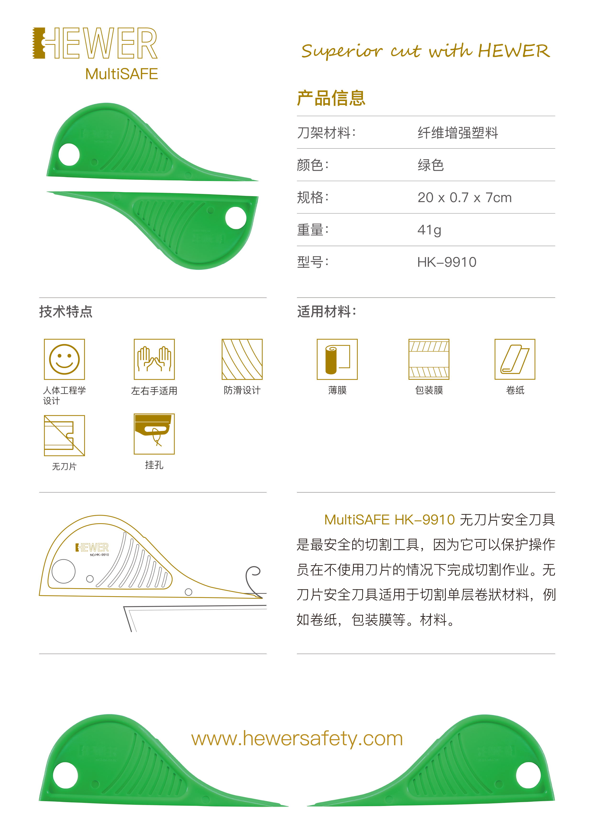 一直以来,HEWER设计和生产的多款安全刀、修边刀、陶瓷刀和安全剪刀等产品,为全球多国的包装、电子、化工、汽配、食品、制药和医疗用品等行业提供专业的安全切割工具,以及更加的安全切割方案。