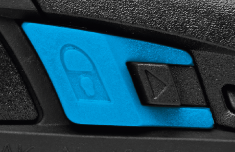 可触发小巧的蓝色刀片锁,防止刀片意外活动。只需按压图中的刀片锁,便可保护自己以防在刀具静止不动时受伤。