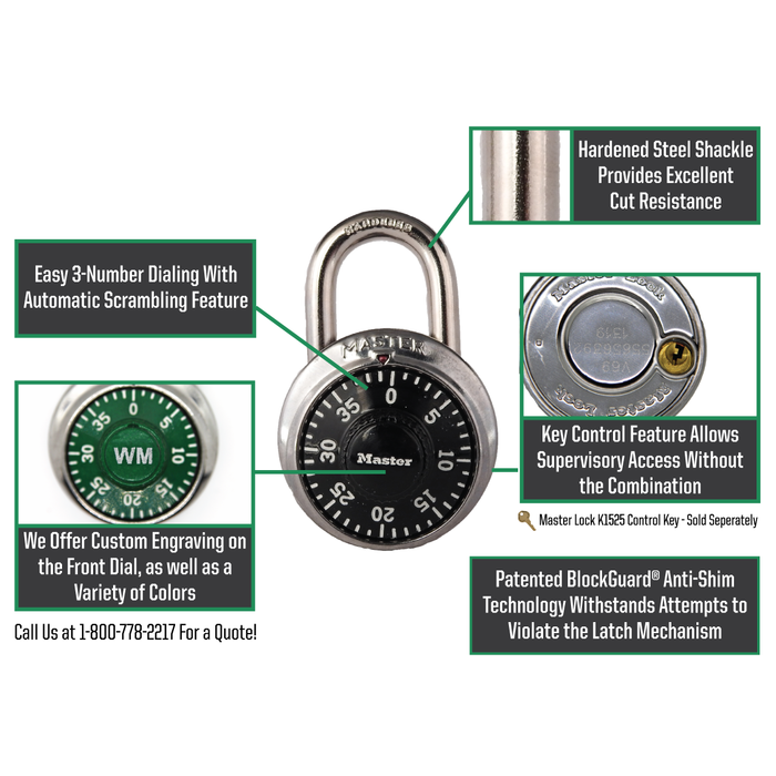 原装玛斯特锁Masterlock 1525MS密码挂锁具有钥匙控制功能,以及许多增强的安全功能,如 BlockGuard ®防抖技术、硬化钢锁梁和双加固不锈钢外壳。这些锁设计用于安装直径至少为 5/16 英寸(8 毫米)的挂锁眼的储物柜。
