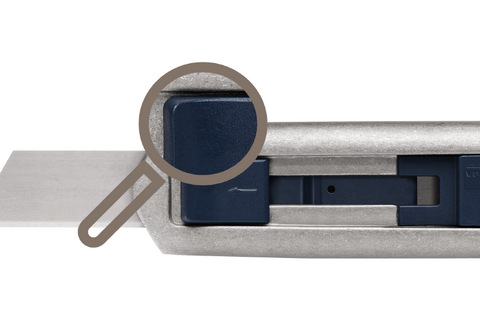 你可以快速更换刀片。就是字面上的意思。你只需要将可探测金属的塑胶嵌件从手柄中推出并用新刀片替换旧的刀片即可。
