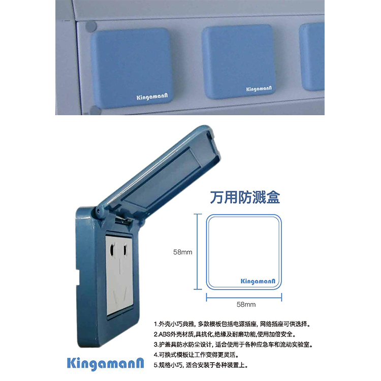 原装金嘉满Kingamann ERV系列KS-A07特种防水防尘电源开关盒在传统的概念上再创新意, 比一般插座更具特色。精细,安全,灵活的设计令应用范围更广泛, 适合使用于各种流动应急车和实验室。