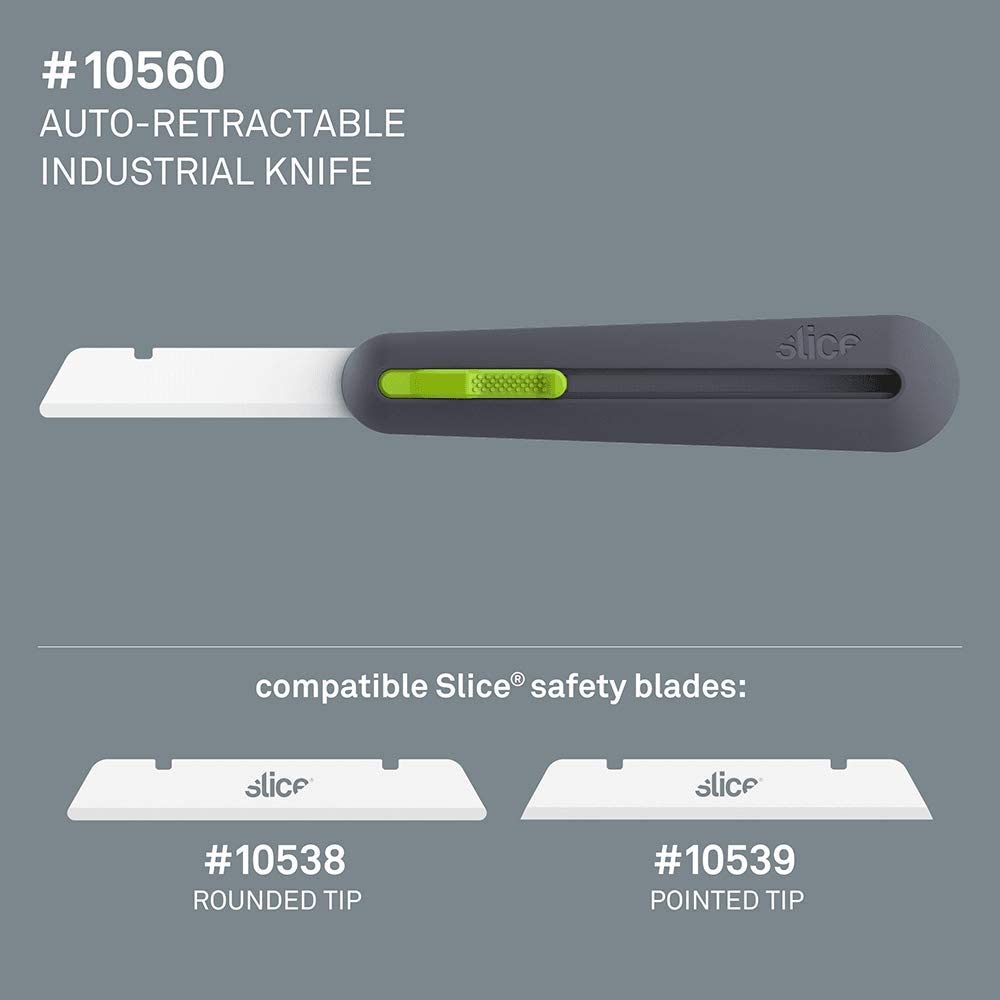 此外,新款SLICE 10539尖形刀尖陶瓷工业安全刀片更有着无火花、无磁性、不导电、具化学堕性及不生锈等特性。