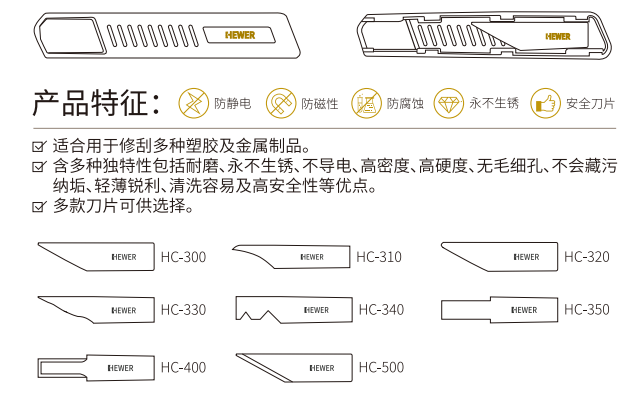 有别于一般陶瓷,用于制作 HEWER MultiCERA 陶瓷修边刀的高级精密陶瓷含100%二氧化锆,;一种熔点约 2700℃,沸点约 4300℃,稳定性极高的白色晶体,让修边作业更流畅,更省成本。