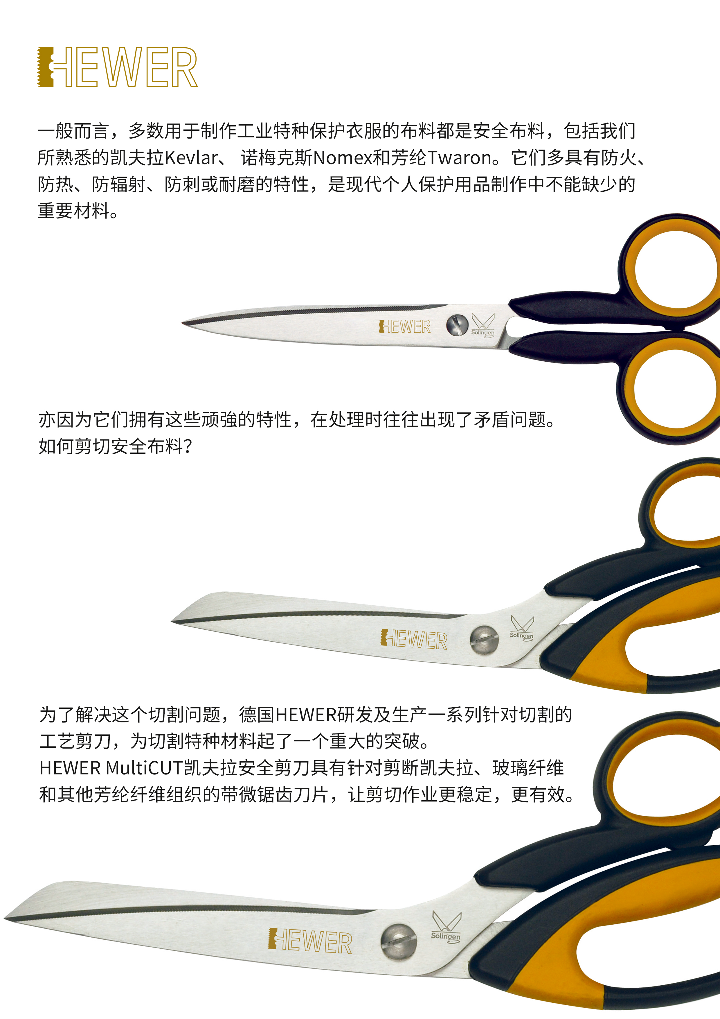 为了解决这个切割问题,德国HEWER研发及生产一系列针对切割的工艺剪刀,为切割特种材料起了一个重大的突破。