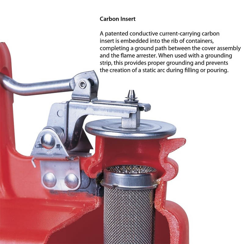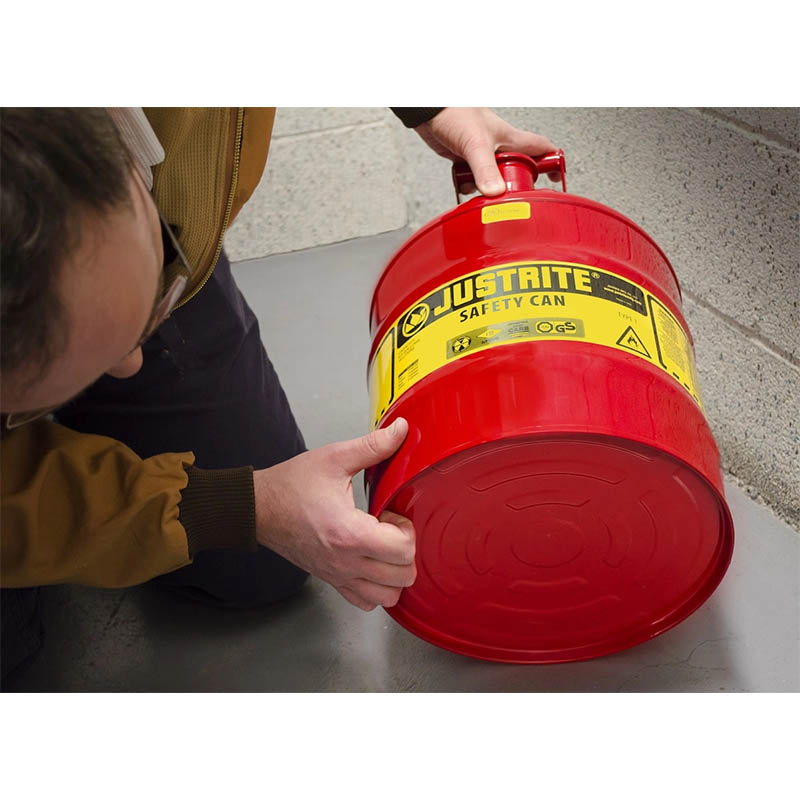 杰斯瑞特Justrite I型5加仑易燃液体安全罐 7150100Z设有一个用于注入和倾倒的罐口。容量为1升及以下的罐设有一个释放扳柄,容量更大的罐设有一个悬摆手柄,非常便于承载较重的负载。