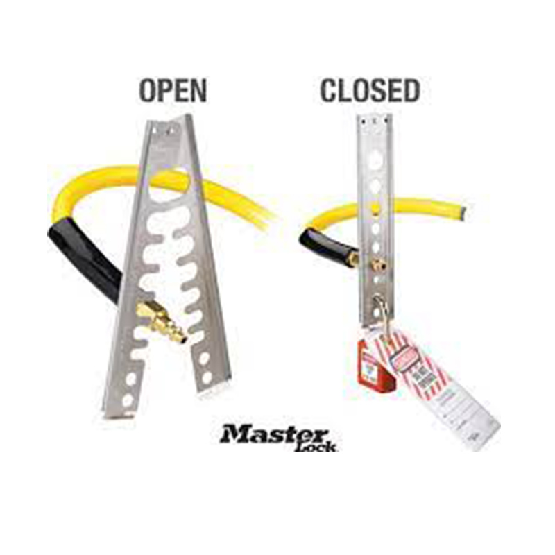 设备接受任何 Master Lock 或 American Lock 安全挂锁,并与锁定搭扣配合使用,以应对多个工人锁定的情况。