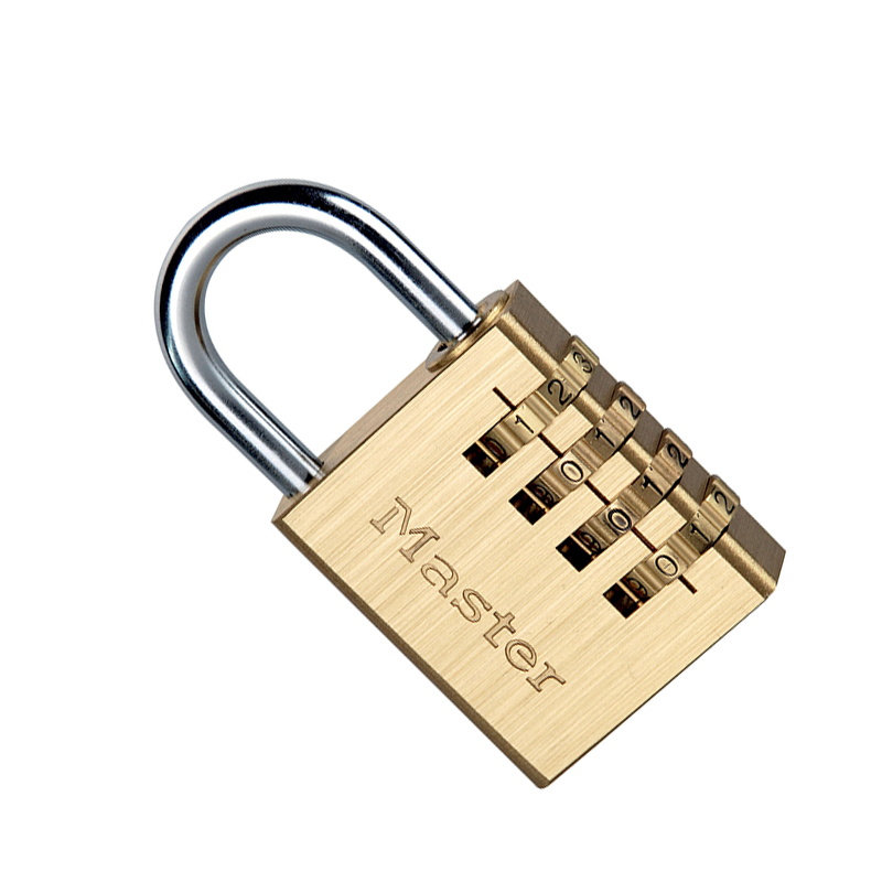 玛斯特Masterlock 黄铜数字密码挂锁 No. 604EURD Set-Your-Own 组合挂锁采用 40 毫米宽的铝制锁体,经久耐用,黄铜饰面。