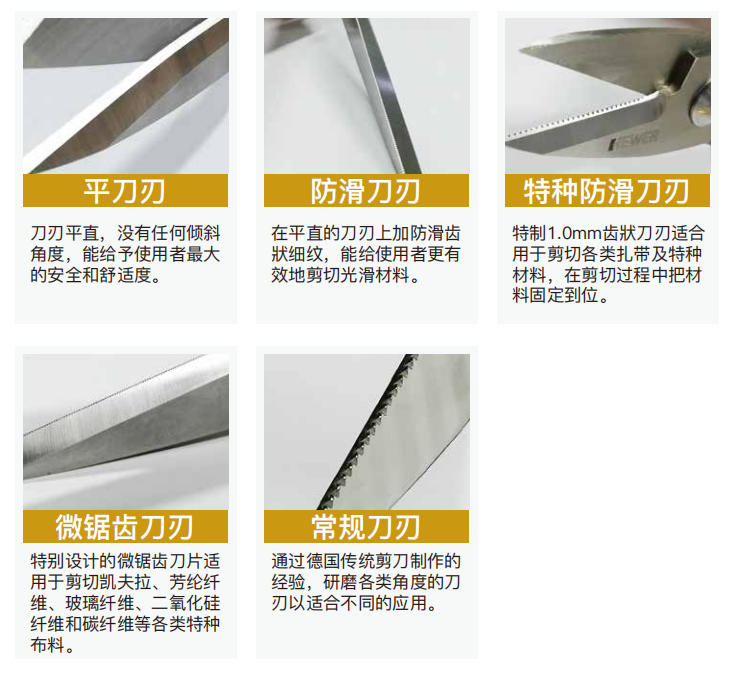 通过德国传统剪刀制作的经验,研磨各类角度的刀刃以适合不同的应用。