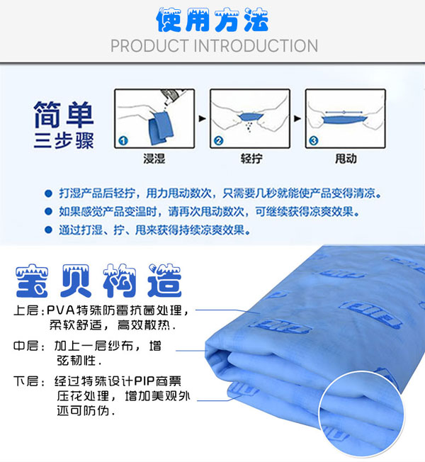 降温毛巾,使用方便、不用冷藏、不需用电,一次加水,使用时间长达数小时,工作时佩戴,不仅能止汗,还能使身体感到凉爽,简直是高温作业者的必备降温用品。